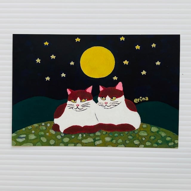 癒しの猫絵画家・山下絵理奈デザインのポストカード「コーンムーン」。9月の満月コーンムーンを見上げる猫の表情をとらえた絵は、贈り物や手紙にぴったりなアイテムです。お友達や家族に送る際にも、喜んでもらえることでしょう!山下絵理奈の作品集から厳選されたこのポストカードで大切な人との絆を深めてみてはいかがでしょうか?ぜひ贈り物や、自分へのご褒美にお買い求めください。