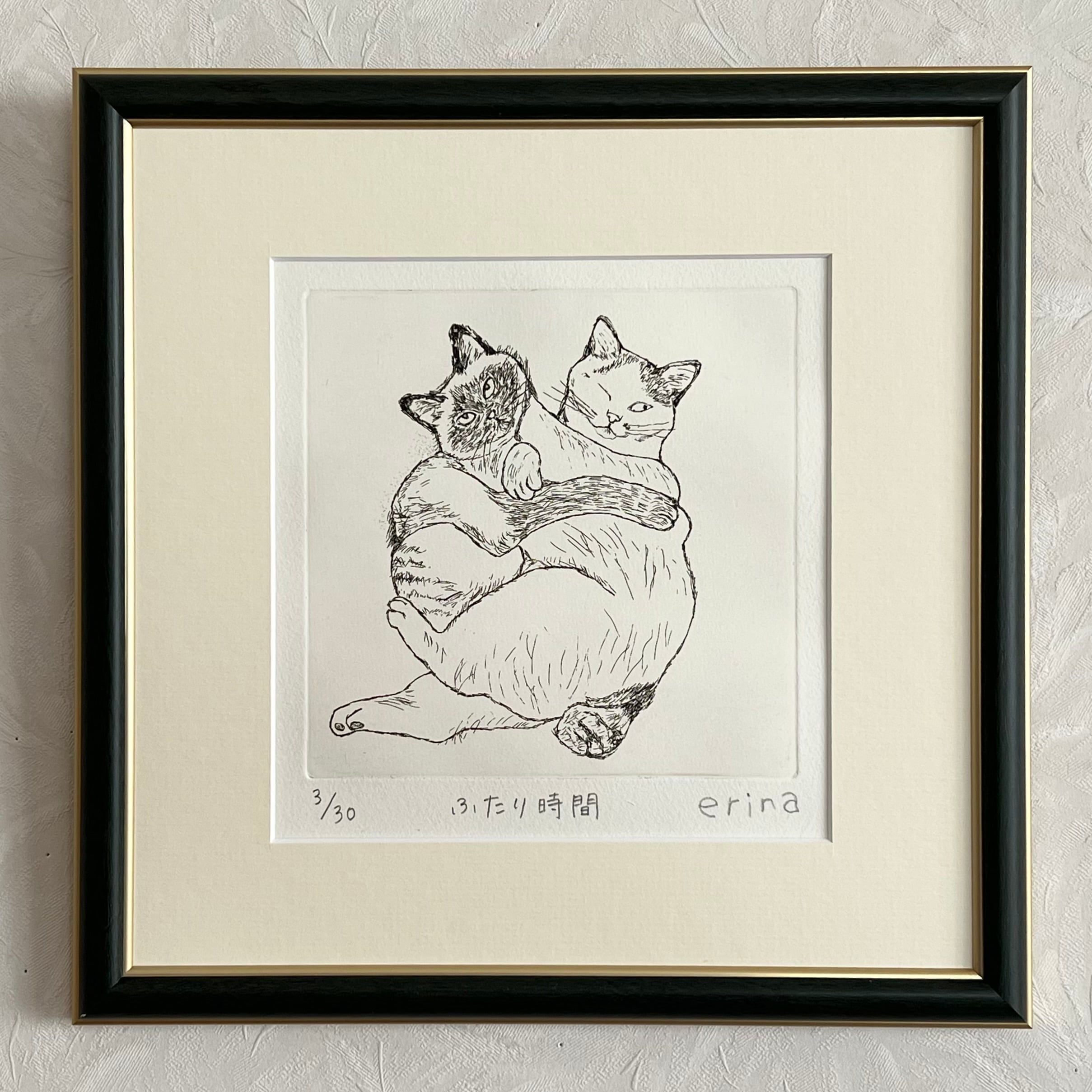 癒しの猫絵画家・山下絵理奈の銅版画「ふたり時間」。可愛らしい猫の表情をとらえた版画は、贈り物や自分へのご褒美にぴったりなアイテムです。お友達や家族に送る際にも、喜んでもらえること間違いなし!また、自宅に飾っておくだけで、ほっこりした気持ちになれることでしょう。この銅版画で大切な人との絆を深めてみてはいかがでしょうか?ぜひ贈り物や、自分へのご褒美にお買い求めください。
